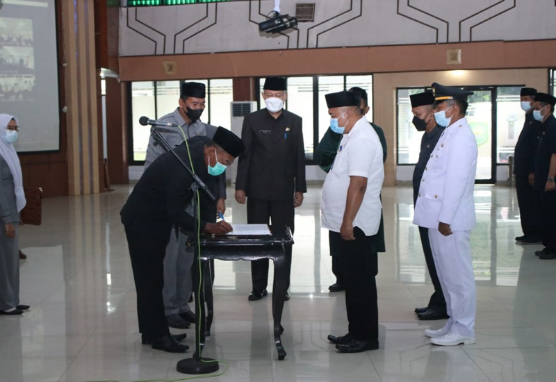 HWOARANGNEWS.ID | Bupati Subang, H. Ruhimat melaksanakan pengukuhan, pelantikan dan pengambilan sumpah janji/jabatan pejabat eselon IV-II di Lingkungan Pemerintah Daerah Kabupaten Subang di Aula Oman Sahroni Pemda Subang, Rabu (23/6/2021).