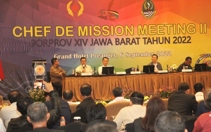 HWOARANGNEWS.ID | Wakil Bupati Subang Agus Masykur Rosyadi, menghadiri Chef De Mission (CdM) Meeting II, yang diselenggarakan oleh Panitia Pekan Olahraga Provinsi (PORPROV) Ke-XIV tahun 2022 Jawa Barat, di Grand Hotel Preanger, Jalan Asia Afrika, Kota Bandung. Selasa malam (6/9/22).