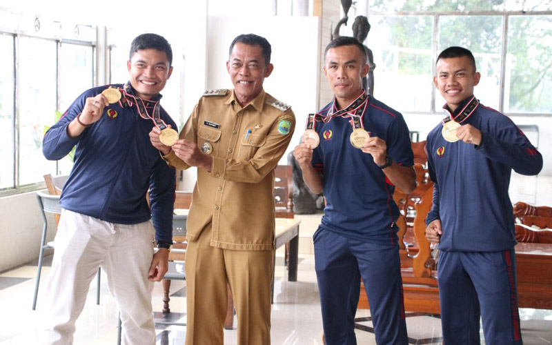 Ketua KONI Subang Asep Rochman Dimyati menyampaikan atlet yang menemui Kang Jimat saat ini adalah Sertu Sandy Firmansyah yang meraih 2 medali emas, Sertu Maruli Butarbutar dengan 1 emas 1 perunggu, dan Serda Tegar Januar dengan perolehan 1 medali emas.