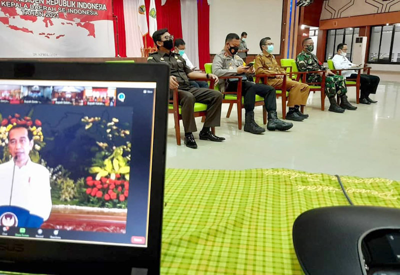HWOARANGNEWS.ID | Wakil Bupati Subang Agus Masykur Rosyadi menghadiri Rapat Koordinasi Nasional (Rakornas) Kepala Daerah/Wakil Kepala Daerah (KDH/WKDH) dan Forum Koordinasi Pimpinan Daerah (Forkopimda) bersama Presiden Republik Indonesia, yang diselenggarakan Kementrian Dalam Negeri, secara virtual di aula Oman Sahroni Pemda Subang. Rabu (28/4/21).