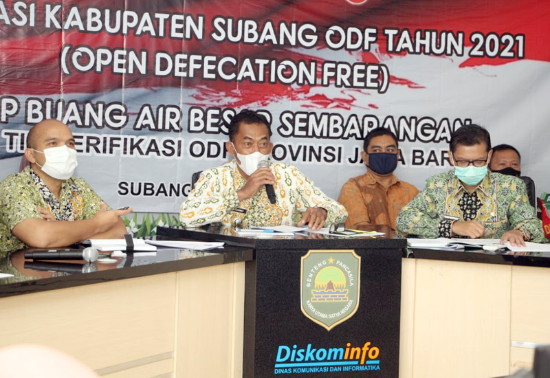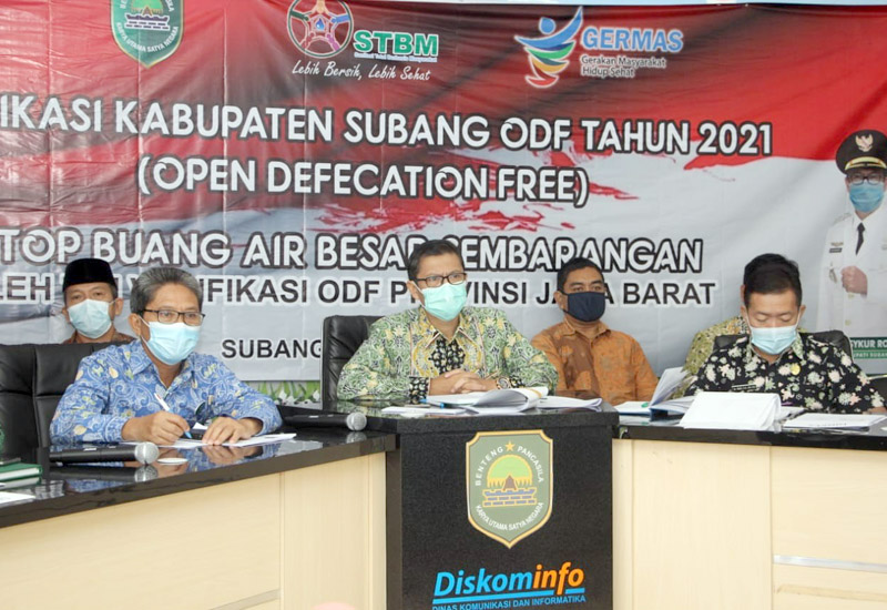 HWOARANGNEWS.ID | Bupati Subang H. Ruhimat dan wakil Bupati Subang Agus Masykur Rosyadi menghadiri acara Verifikasi Kabupaten Subang Open Defecation Free (ODF) tahun 2021 yang dilaksanakan secara virtual oleh Dinas Kesehatan Provinsi Jawa Barat di Gedung Command Center Kantor Diskominfo Subang, Kamis (29/4/2021)