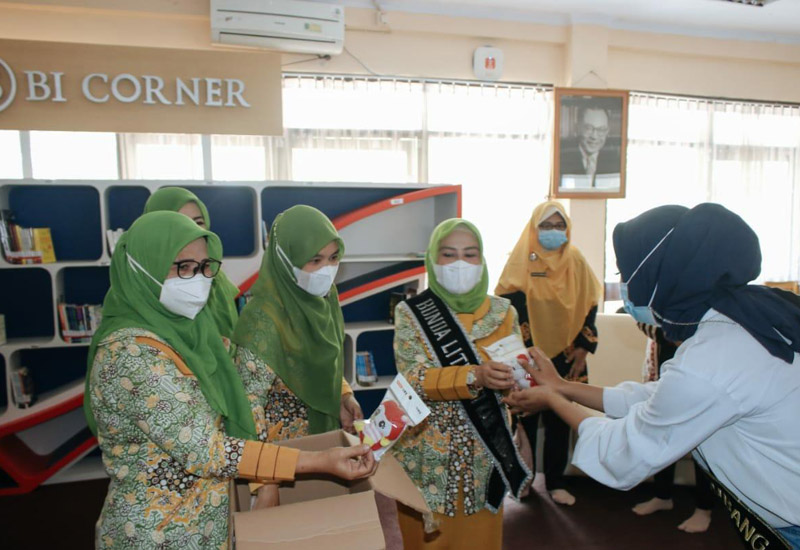 HWOARANGNEWS.ID | Bunda Literasi Kabupaten Subang Hj. Yoyoh Sopiah Ruhimat memberikan pembinaan anak dan remaja di Gedung Perpustakaan Kabupaten Subang. Kamis (29/4/21).