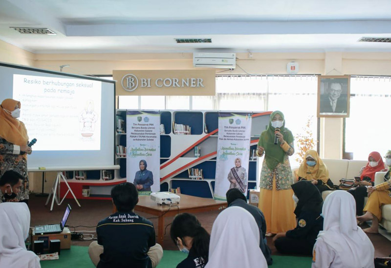 Turut hadir dalam kegiatan ini Kepala Dinas Kearsipan dan Perpustakaan Kabupaten Subang, Kabid Pengelolaan dan Pelayanan Perpustakaan Subang dan pengurus Pokja 1 TP PKK Kabupaten Subang.