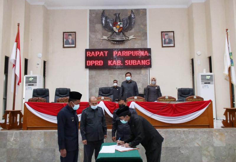 HWOARANGNEWS.ID | Bupati Subang H. Ruhimat menghadiri rapat paripurna DPRD Kabupaten Subang dalam rangka penandatanganan keputusan DPRD atas LKPJ Bupati Subang tahun 2020 di Gedung DPRD Subang, Jum'at (30/4/2021).