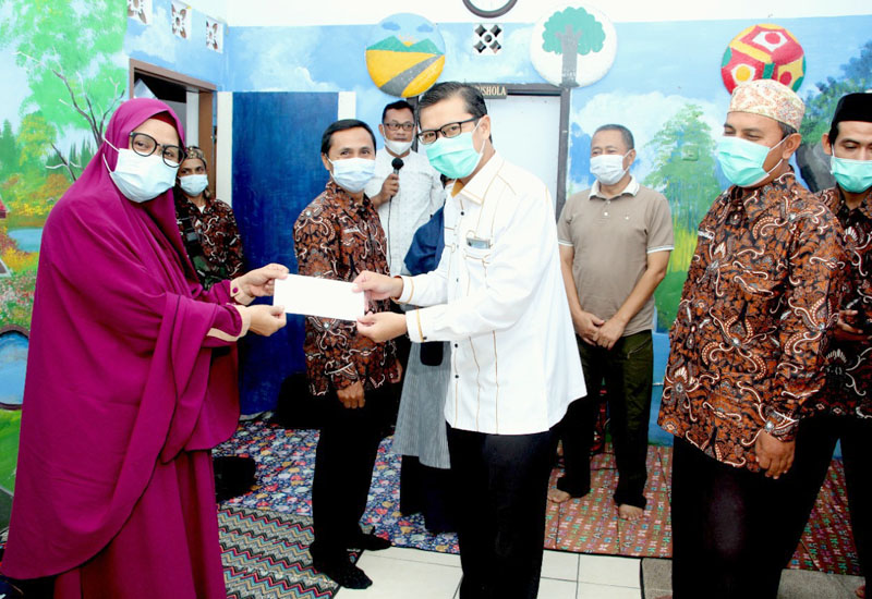 HWOARANGNEWS.ID | Wakil Bupati Subang Agus Masykur Rosyadi secara simbolis menyerahkan bantuan hibah Pemerintah Kabupaten Subang berupa honor kepada Forum Tenaga Honorer Madrasah Indonesia (FTHMI) Kabupaten Subang untuk 2000 orang anggota FTHMI Kabupaten Subang di Raudhatul Athfal Bina Insani Jalancagak. Sabtu (8/5/21).