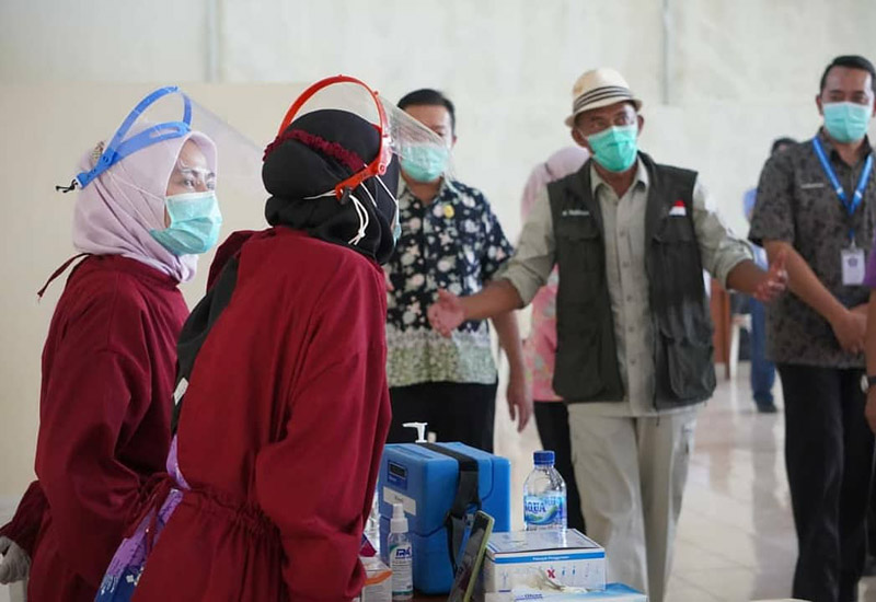 HWOARANGNEWS.ID | Bupati Subang H. Ruhimat meninjau pelaksanaan vaksinasi massal kepada masyarakat Subang di Aulaq Pertemuan Taman Wisata Bintang Fantasi Pamanukan, Kamis (20/5/2021)