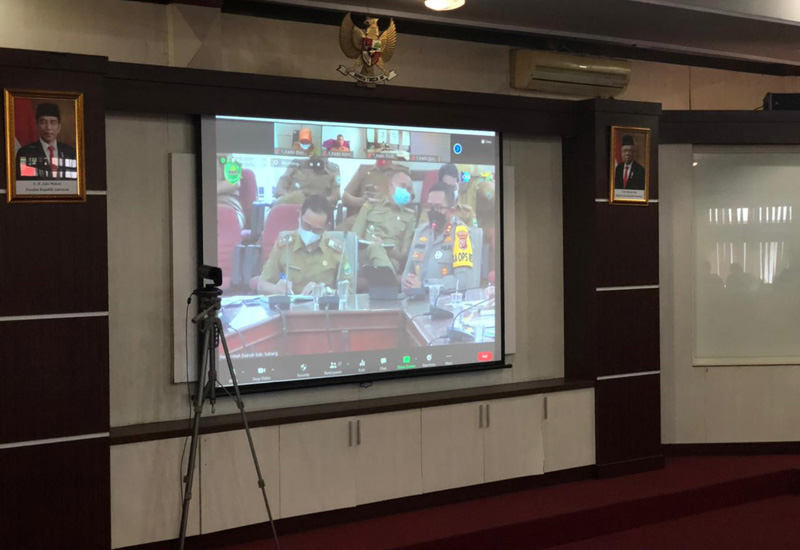 Rapat yang dihadiri secara langsung dan virtual ini tetap menjalankan protokol kesehatan. Dalam rapat tersebut hadir ditempat Para Asisten Daerah, Staff Ahli, Kepala Dinas Kesehatan beserta jajarannya, Kasatpol PP, Kepala BP4D, beberapa Camat, serta secara Virtual Kepala dinas - kepala dinas, Camat & OPD se-Kabupaten Subang.(nawami)