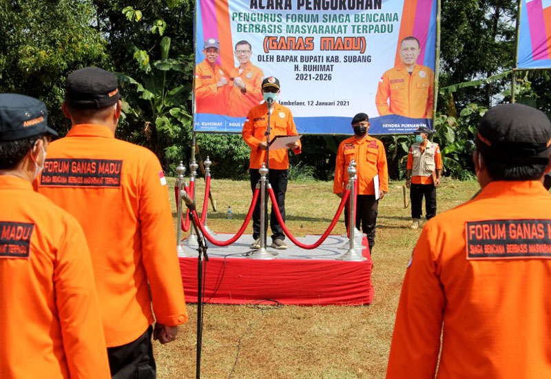 HWOARANGNEWS.ID | Pengurus Forum Siaga Bencana Berbasis Masyarakat Terpadu (Ganas Madu) Kabupaten Subang periode 2021-2026 resmi dilantik oleh Wakil Bupati Subang Agus Masykur Rosyadi di SDN Puncak Jambelaer, Kecamatan Dawuan. Sabtu (12/6/21).