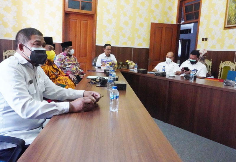 HWOARANGNEWS.ID | Sekretaris Daerah Kabupaten Subang H. Asep Nuroni S.Sos, M.Si melaksanakan Rapat Koordinasi secara virtual dalam rangka Sinergitas Program Pemerintah Daerah Kabupaten Subang dengan Kementerian Agama RI di Ruang Rapat Segitiga Rumah Dinas Bupati, Rabu (28/7/2021).