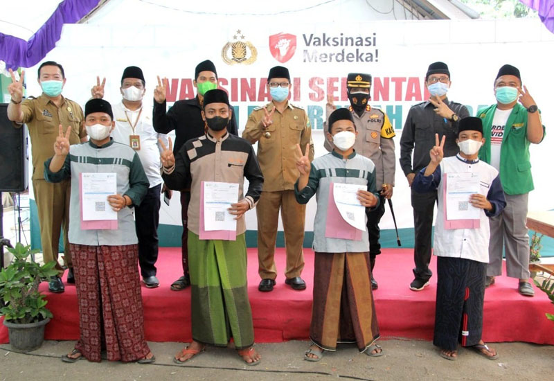 HWOARANGNEWS.ID | Seluruh santri dan pengurus pondok pesantren Assalafiyah Dsn. Sidamulya, Ds. Ciasembaru, kecamatan Ciasem, melaksanakan vaksinasi merdeka dalam rangka vaksinasi serentak di pondok pesantren dan rumah ibadah yang dilaksanakan oleh Polres Subang dan Pemerintah Daerah Kabupaten Subang. Selasa (7/9/21).