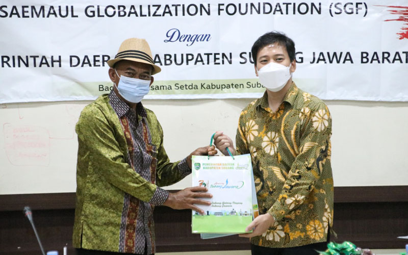 HWOARANGNEWS.ID | Bupati Subang H. Ruhimat menghadiri kegiatan penandatanganan nota kesepahaman kerjasama antara Saemul Globalization Foundation (SGF) dengan pemerintah daerah Kabupaten Subang, di Kantor Dinas Lingkungan Hidup, Subang. Jumat 26 November 2021.