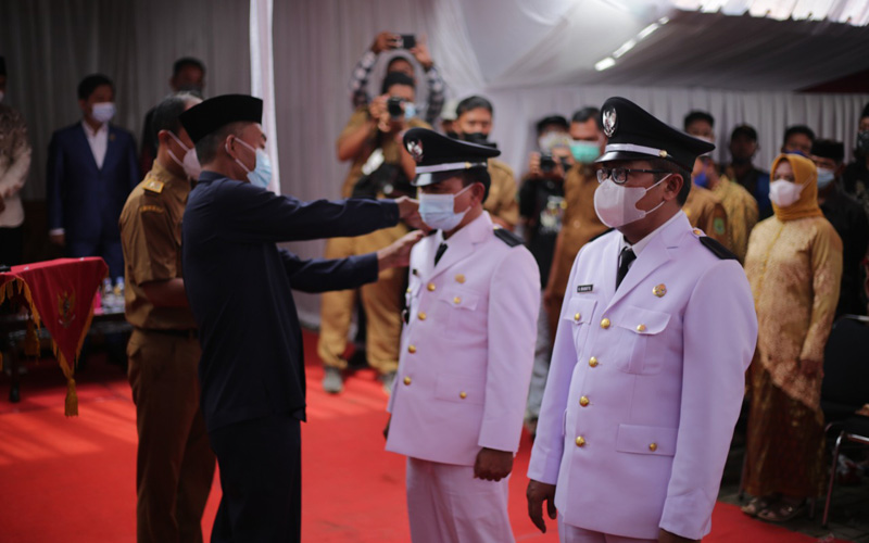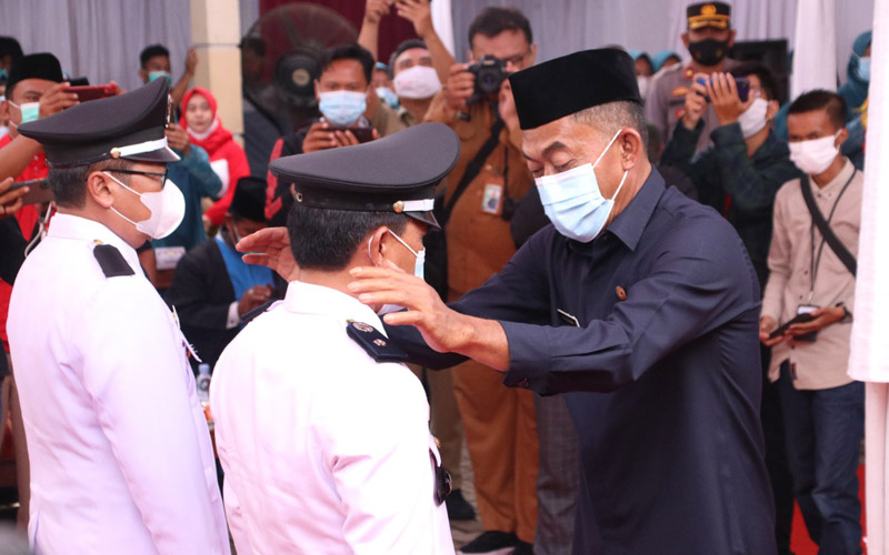 HWOARANGNEWS.ID | Bupati Subang, H. Ruhimat melantik dan mengambil sumpah kepala desa terpilih Desa Bongas dan Desa Rancahilir masa jabatan 2021-2027, di Aula Desa Rancahilir, Senin (3/2/2022).