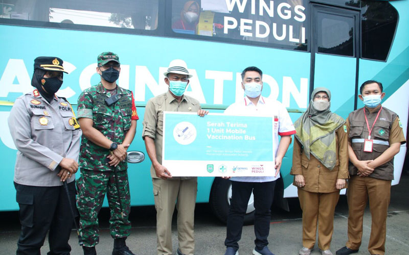 Bus vaksinasi tersebut merupakan bantuan dari Yayasan Wings Peduli dan menjadi bantuan Bus pertama yang diberikan oleh PT. Wings kepada Pemerintahan di Indonesia.