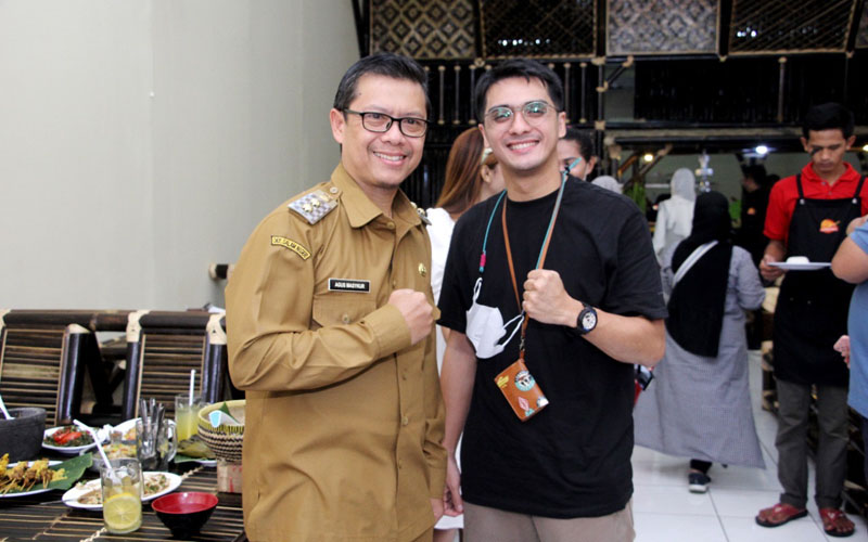 HWOARANGNEWS.ID | Wakil Bupati Subang Agus Masykur Rosyadi bersama Aktor Ricky Harun menghadiri pembukaan sekaligus peresmian Kedai Sambal Dadak Subang di Jalan Pejuang 45 Karanganyar, Subang Selasa (25/02/2022).